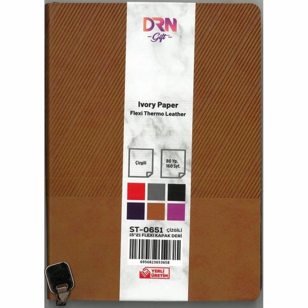 DRN GIFT ST-0651 15x21 FLEXI KAPAK DERİ MODEL 80 YP. ÇİZGİLİ DEFTER - TEKLİ