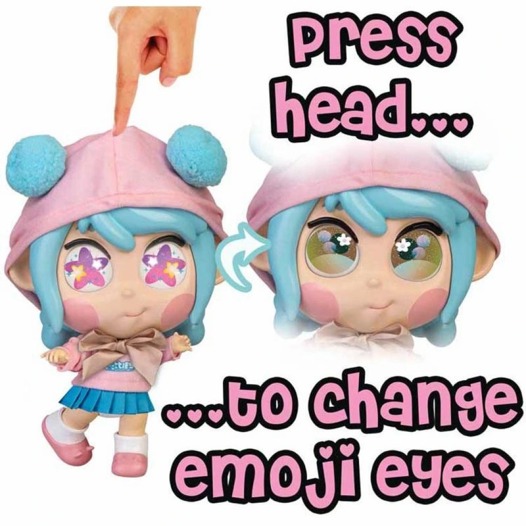 Kafasındaki butona basıldığında 3 farklı duyguyu ifade eden sevimli emoji gözleri ortaya çıkıyor.