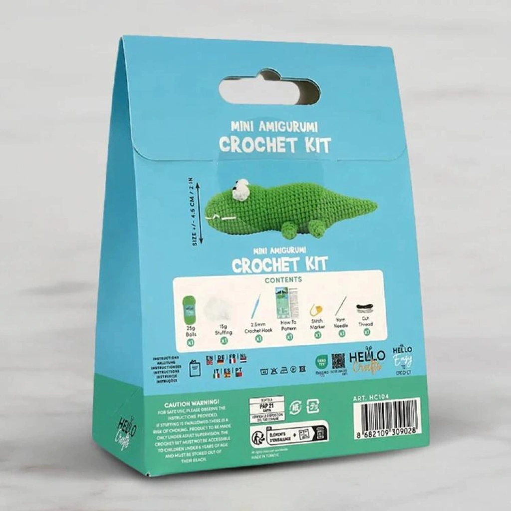 HELLO CRAFTS EASY HC104 CROCHET MİNİ AMIGURUMI ÖRGÜ KİTİ - SEVİMLİ TİMSAH SNAPPER (1 SET)