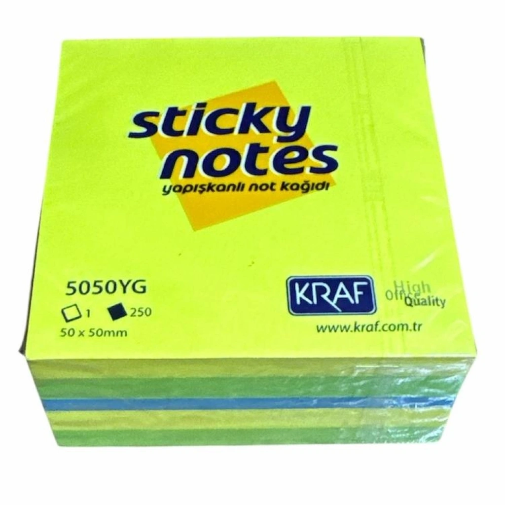 KRAF 5050YG YAPIŞKANLI NOT KAĞIDI KÜP 250 YP. 50x50mm NEON YELLOW & GREEN