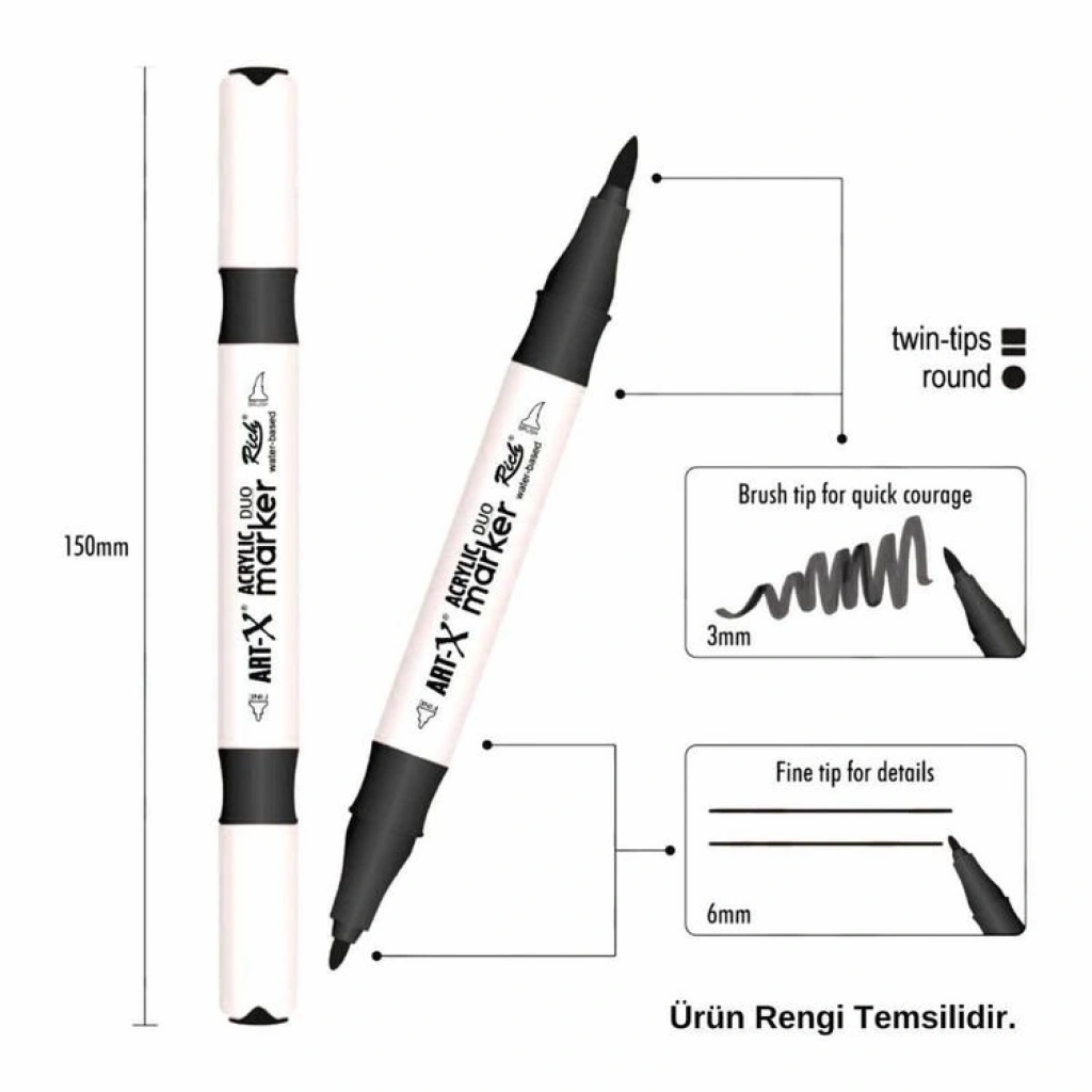 Göze çarpan varyasyonlardan biri, sanatçıların hassasiyet ve çok yönlülük ihtiyaçlarını karşılayan, çift uçlu akrilik işaretleme kalemidir.