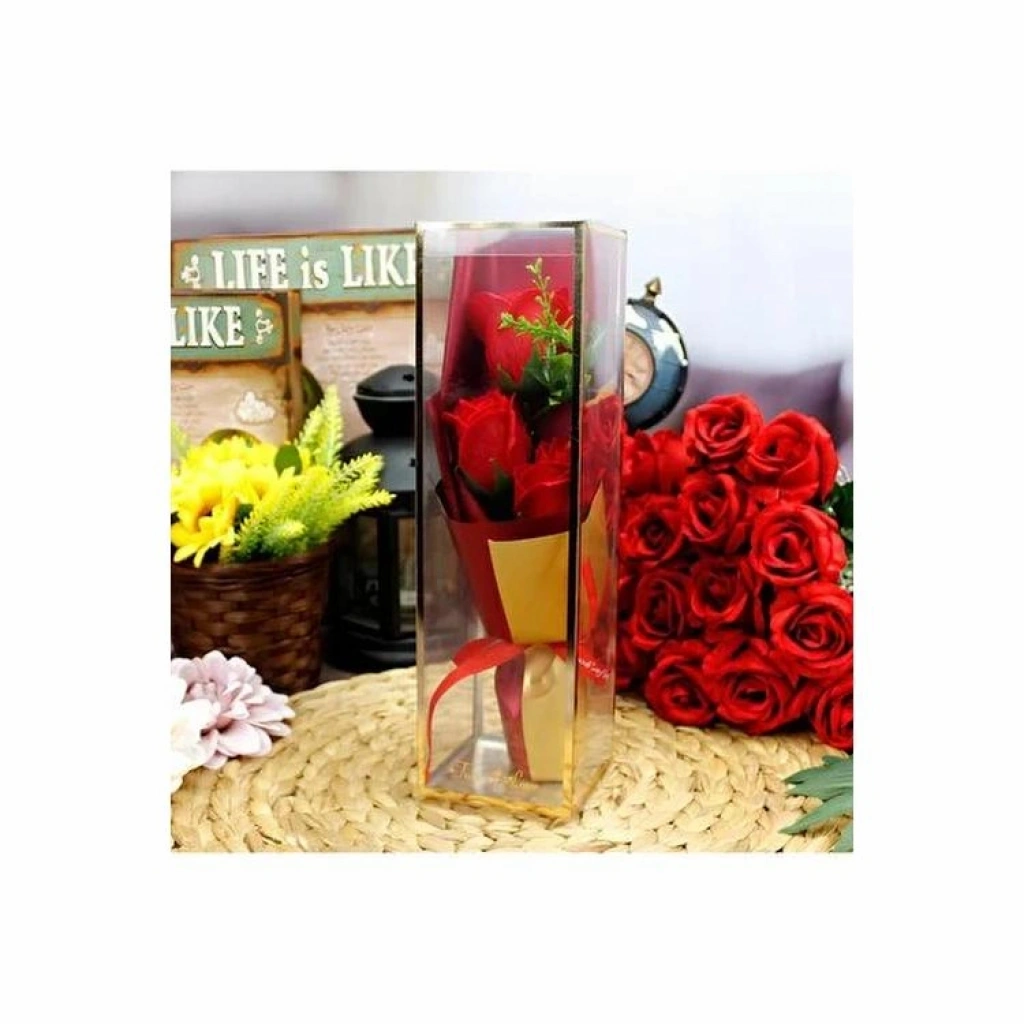 YLZ XC-54 KUTULU KIRMIZI GÜL BUKETİ 6 GÜL YAPAY ÇİÇEK