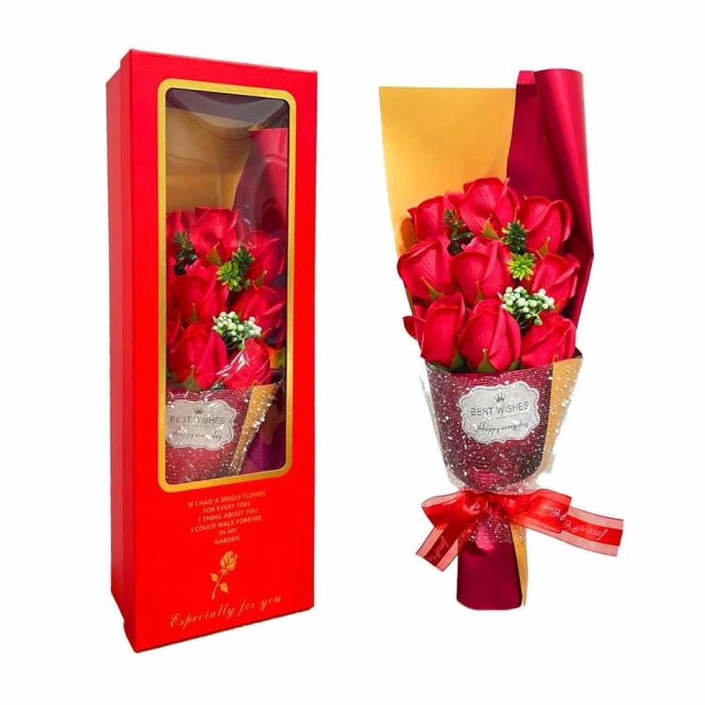 YLZ XC-54 KUTULU KIRMIZI GÜL BUKETİ 6 GÜL YAPAY ÇİÇEK