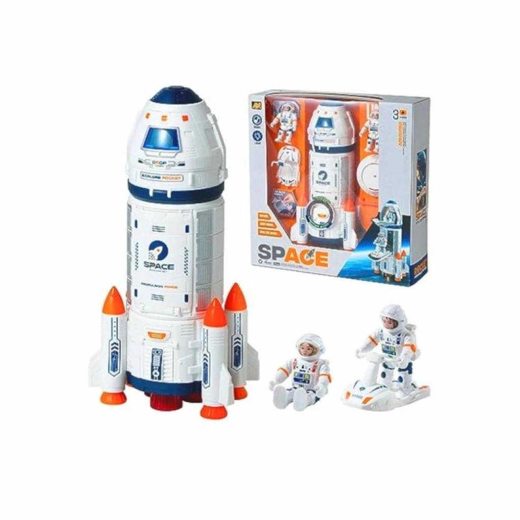 Uzay roketi seti 1 uzay dönüş kapsülü, 2 astronot, 1 scooter, 1 disk, 1 teleskopik kol mevcuttur.