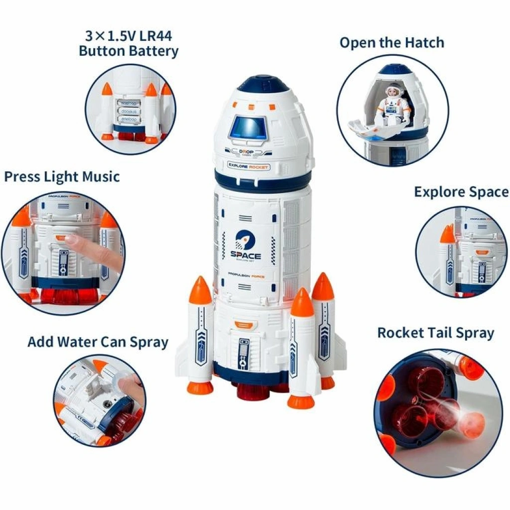 Yüksek kaliteli tasarım ve malzemeler: Bu uzay roketi, düşmeye, aşınmaya ve uzun ömre dayanıklı yüksek kaliteli ABS malzemeden üretilmiştir.