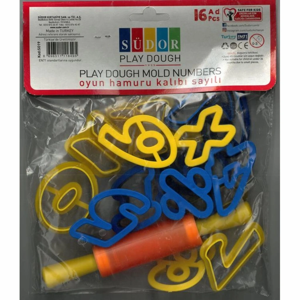 SÜDOR S019 OYUN HAMURU KALIBI SAYILI + MERDANE 16'LI TEK POŞET