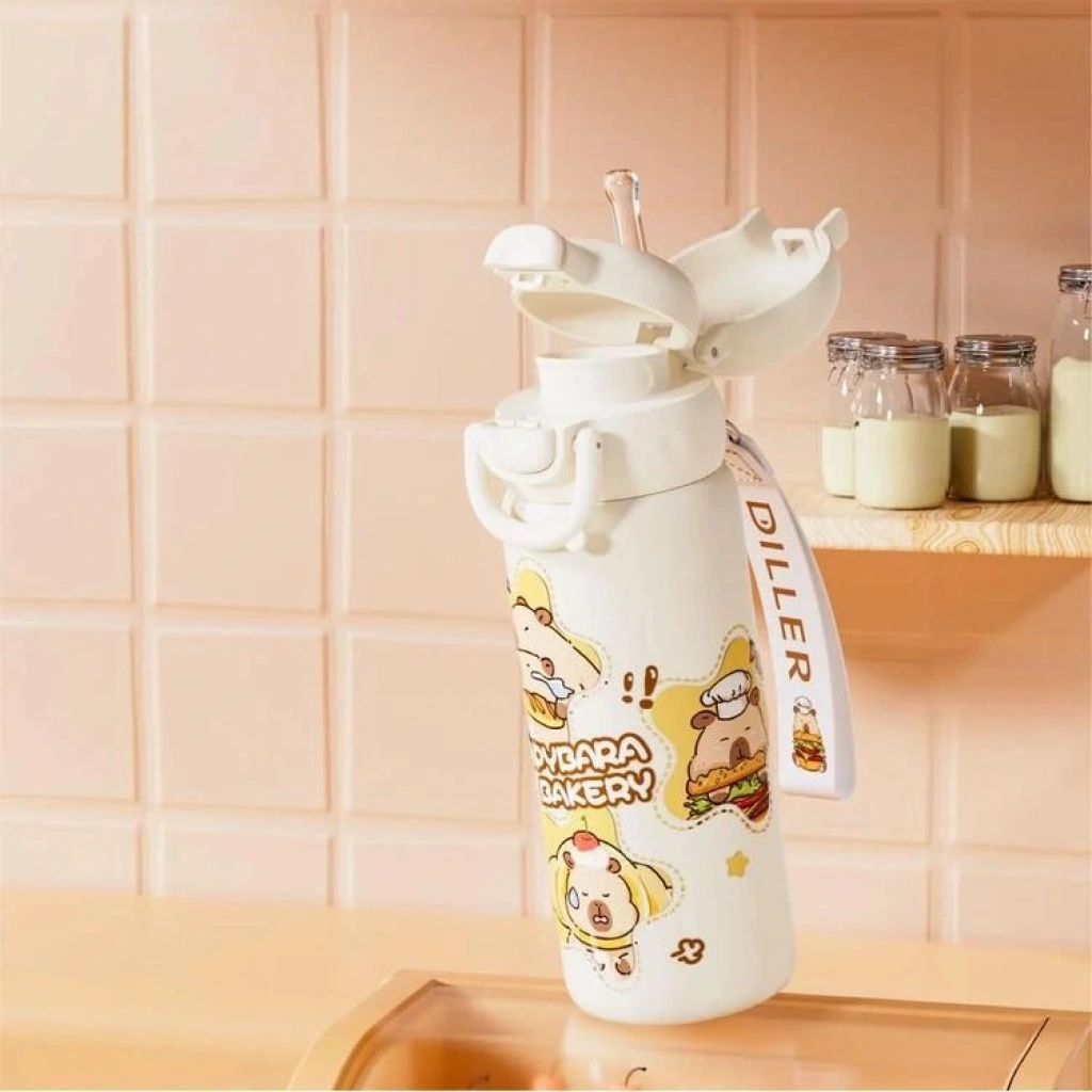 Capybara (Capy Para) desenli , Diller®’ın yüksek kalite standartlarıyla üretilmiş 600 ml paslanmaz çelik termosu, günlük kullanımda pratiklik ve üstün sıcak-soğuk koruması