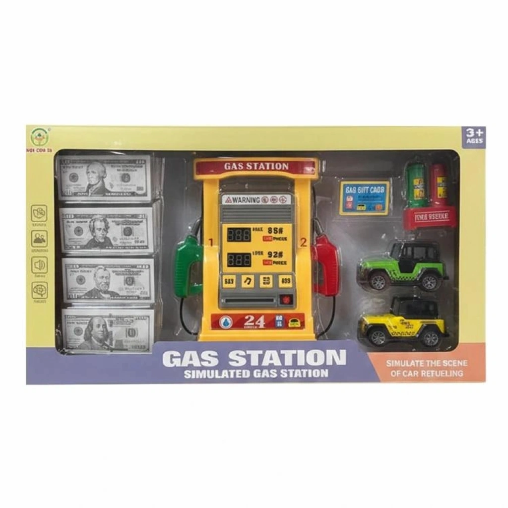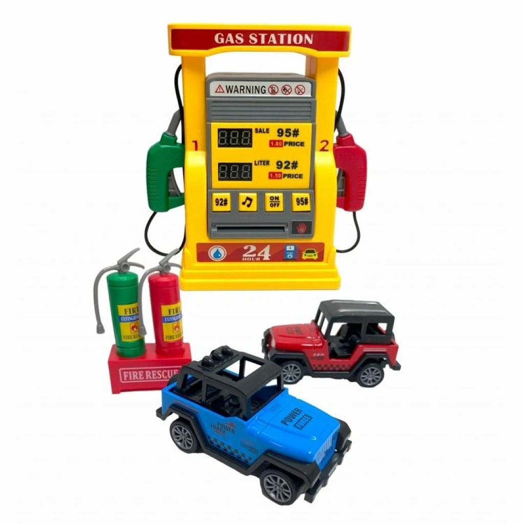 4İ 2192E-27 BENZİN İSTASYONU SİMÜLASYONU SESLİ ÇEK BIRAK ARABALI OYUN SETİ 3+