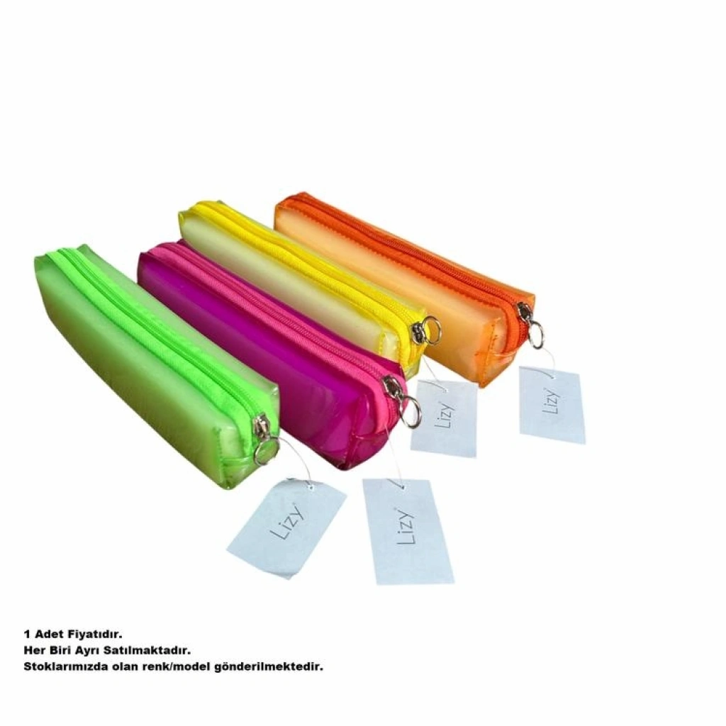 LİZY ŞFKLM ŞEFFAF TEK GÖZLÜ RENKLİ FERMUARLI KALEM ÇANTASI - TEKLİ