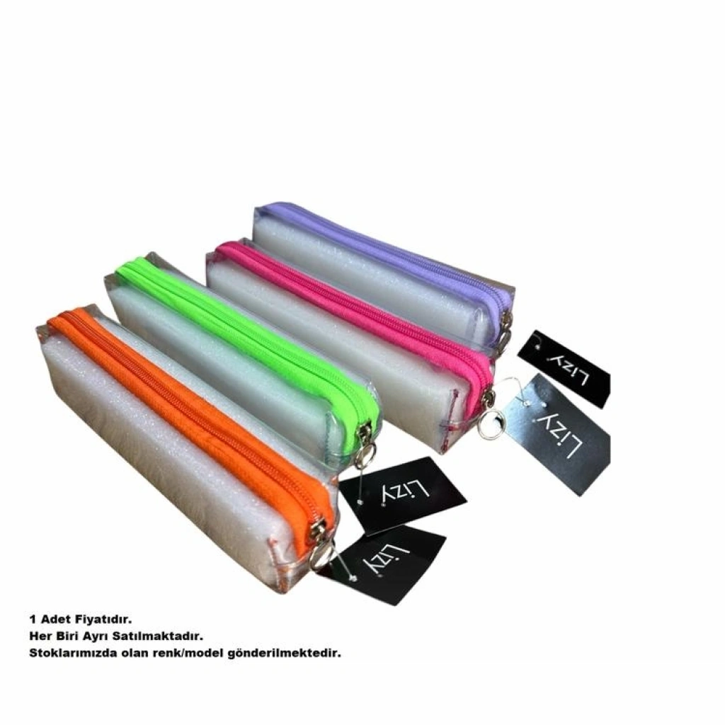 LİZY ŞFKLM ŞEFFAF TEK GÖZLÜ RENKLİ FERMUARLI KALEM ÇANTASI - TEKLİ