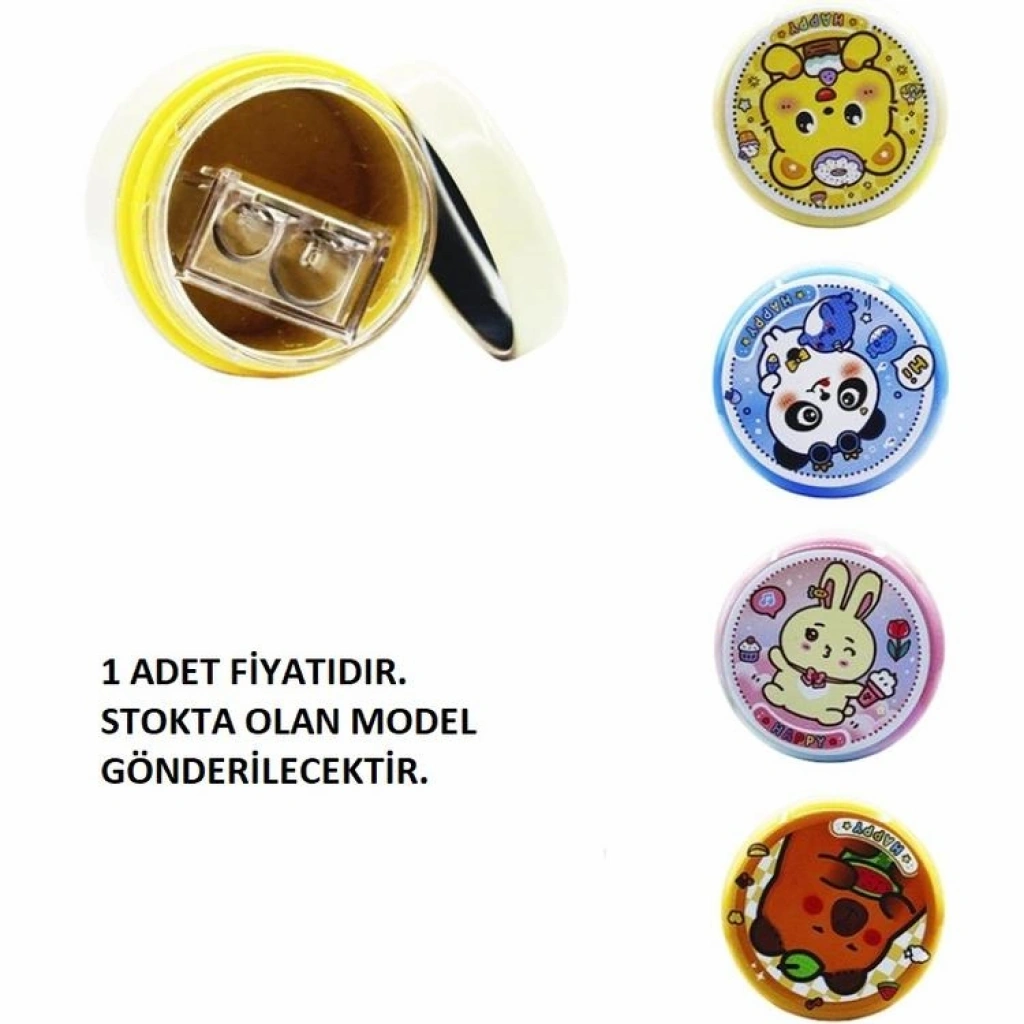 MİKRO MK-8152 ÇİFT KAPAKLI HAPPY FRIENDS ÇİFT DELİKLİ HAZNELİ KALEMTIRAŞ -TEKLİ