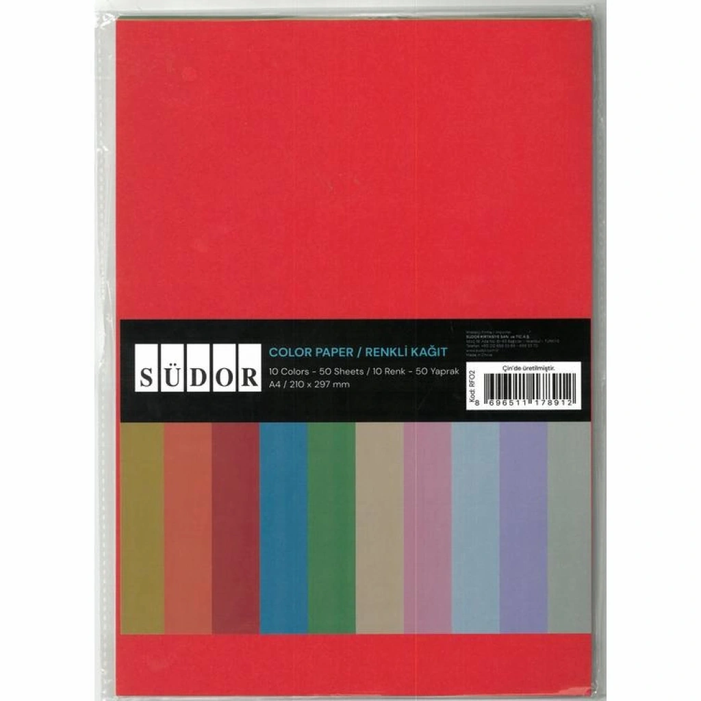 SÜDOR RF01 RENKLİ KAĞIT A4 10 RENK 100'LÜ TEK PAKET