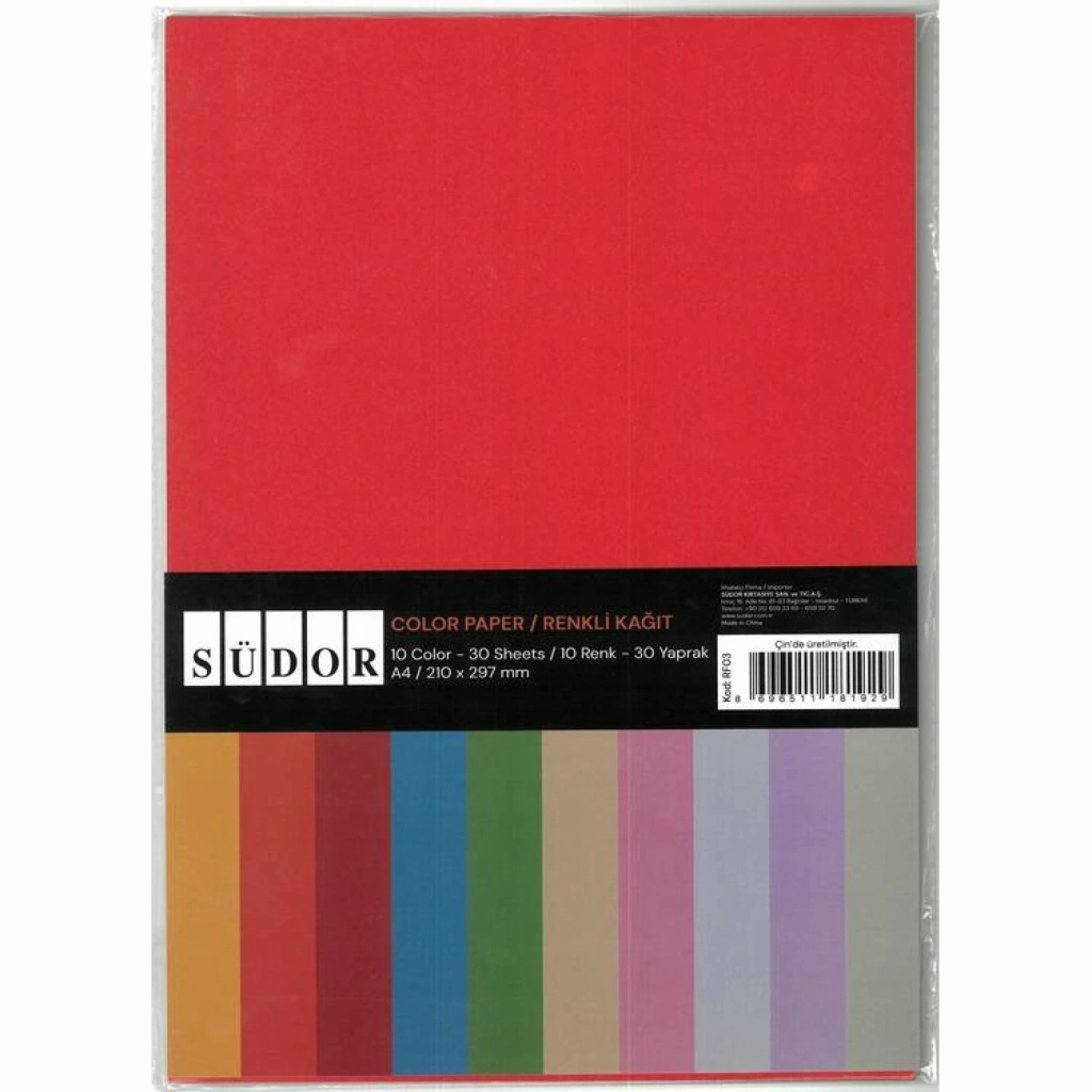 SÜDOR RF01 RENKLİ KAĞIT A4 10 RENK 100'LÜ TEK PAKET