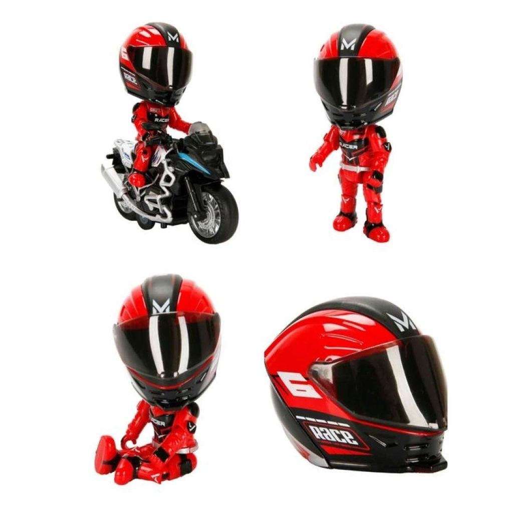 1:14 ölçekli motosiklet modeli üzerine gövdesi kask içerisinde yer alan eklemli yarışçı figürünü yerleştirebilir, gövdesini