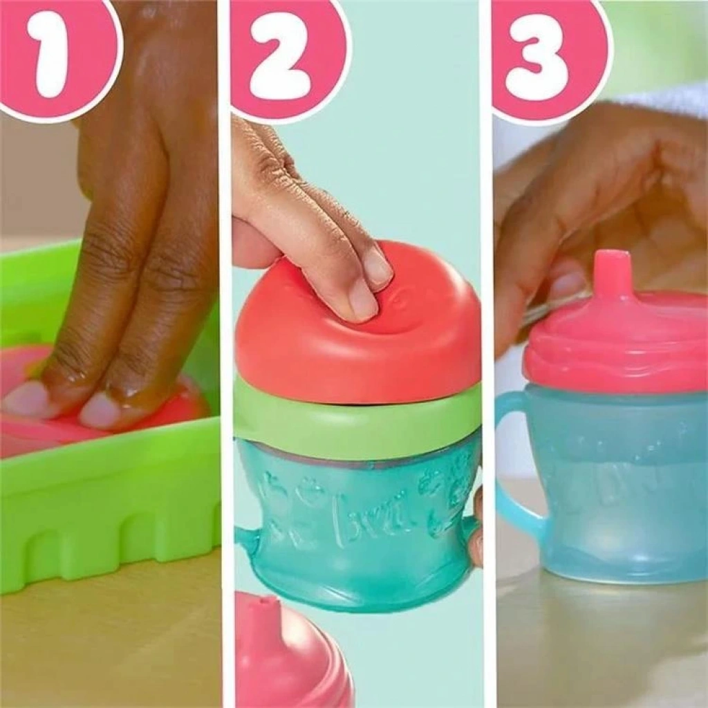 Baby Alive bebeğini beslemek için hayali meyve sıkacağı ve damlatmaz bardak aksesuarını kullanabilir!