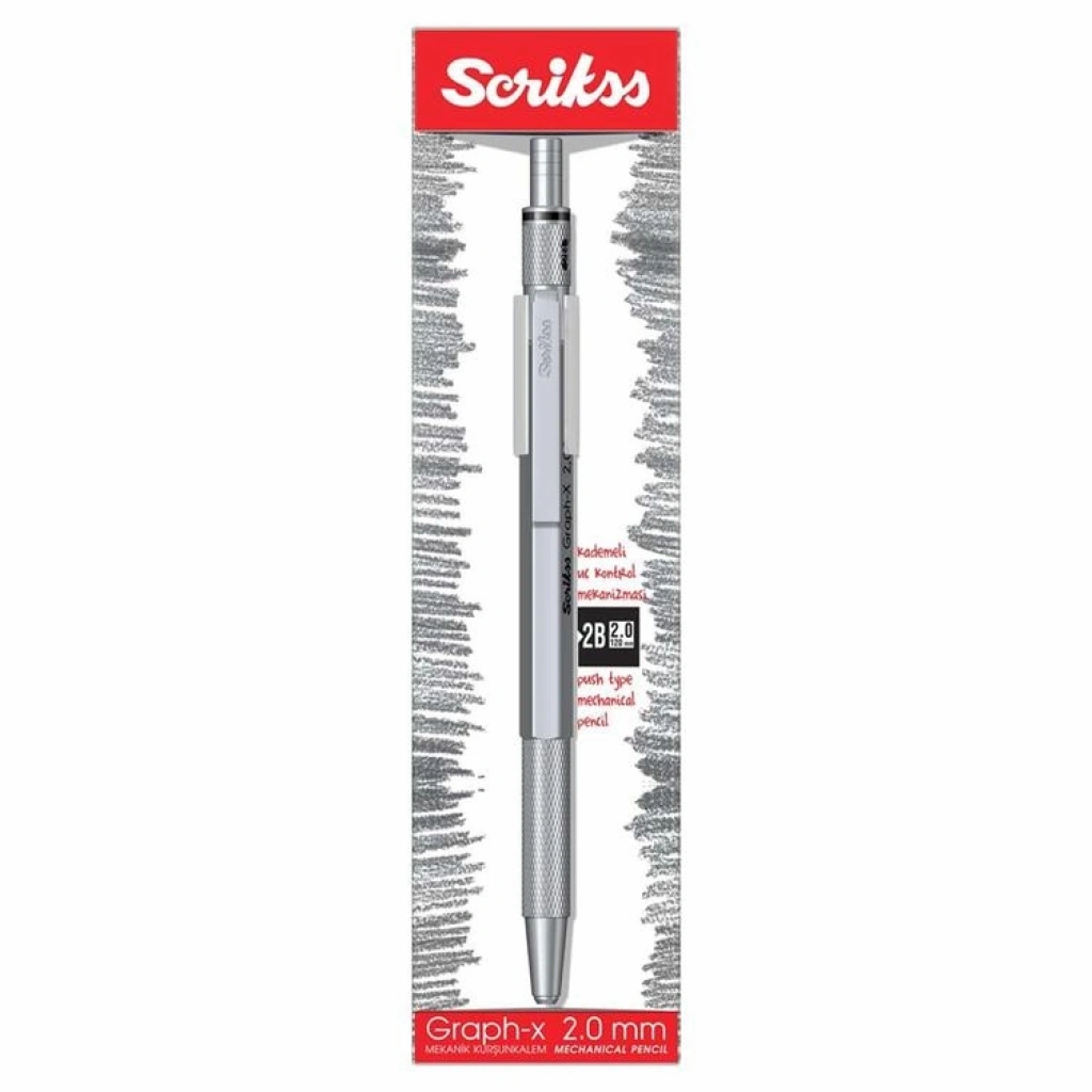 SCRIKSS GRAPH-X METAL 2.0MM VERSATİL KALEM ŞEFFAF KUTU GÜMÜŞ GRİ