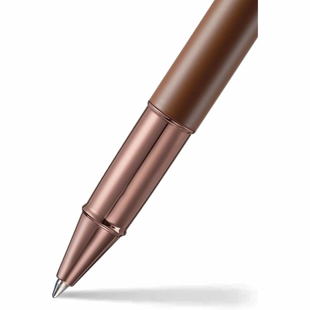Mat kahverengi gövdesi, sıcak kahve tonlarını andıran zarif görünümüyle dikkat çekerken; Regal Brown PVD kaplamalı detayları kaleme sofistike bir ışıltı kazandırır.