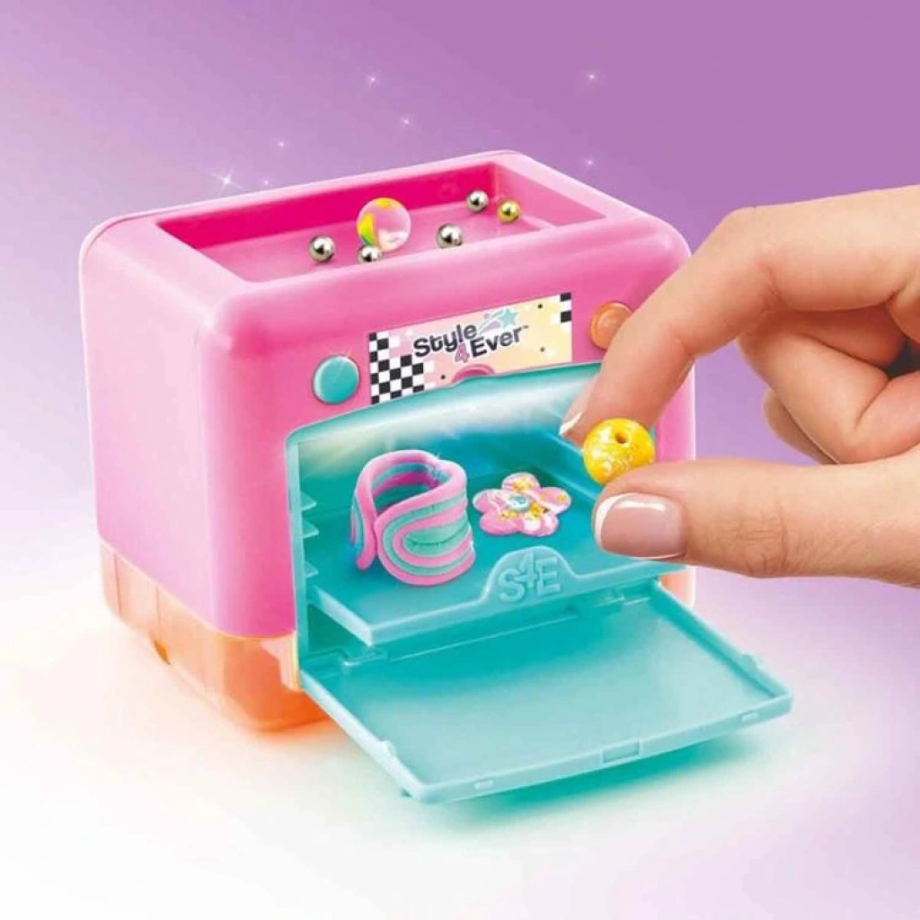 Sihirli kili karıştır, kalıba dök, şekil ver ve son olarak pişirme makinesinde pişir! 3 dakika pişme süresini bekledikten sonra mükemmel takılar yaratabilirsin.
