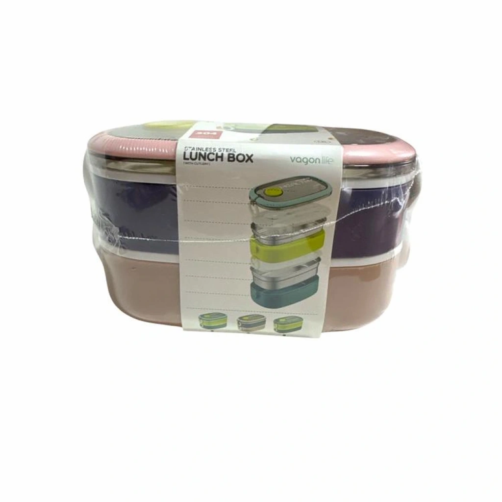VAGONLİFE ÇELİK YEMEK KABI 2 KATLI LUNCH BOX 900ml - VGN6729 PEMBE-MOR