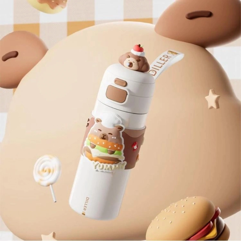 Pipetli bu termos ergonomik yapısı sayesinde çocuklar için kolay kullanım sağlar; silikon pipet çıkarılarak temizlenebilir.