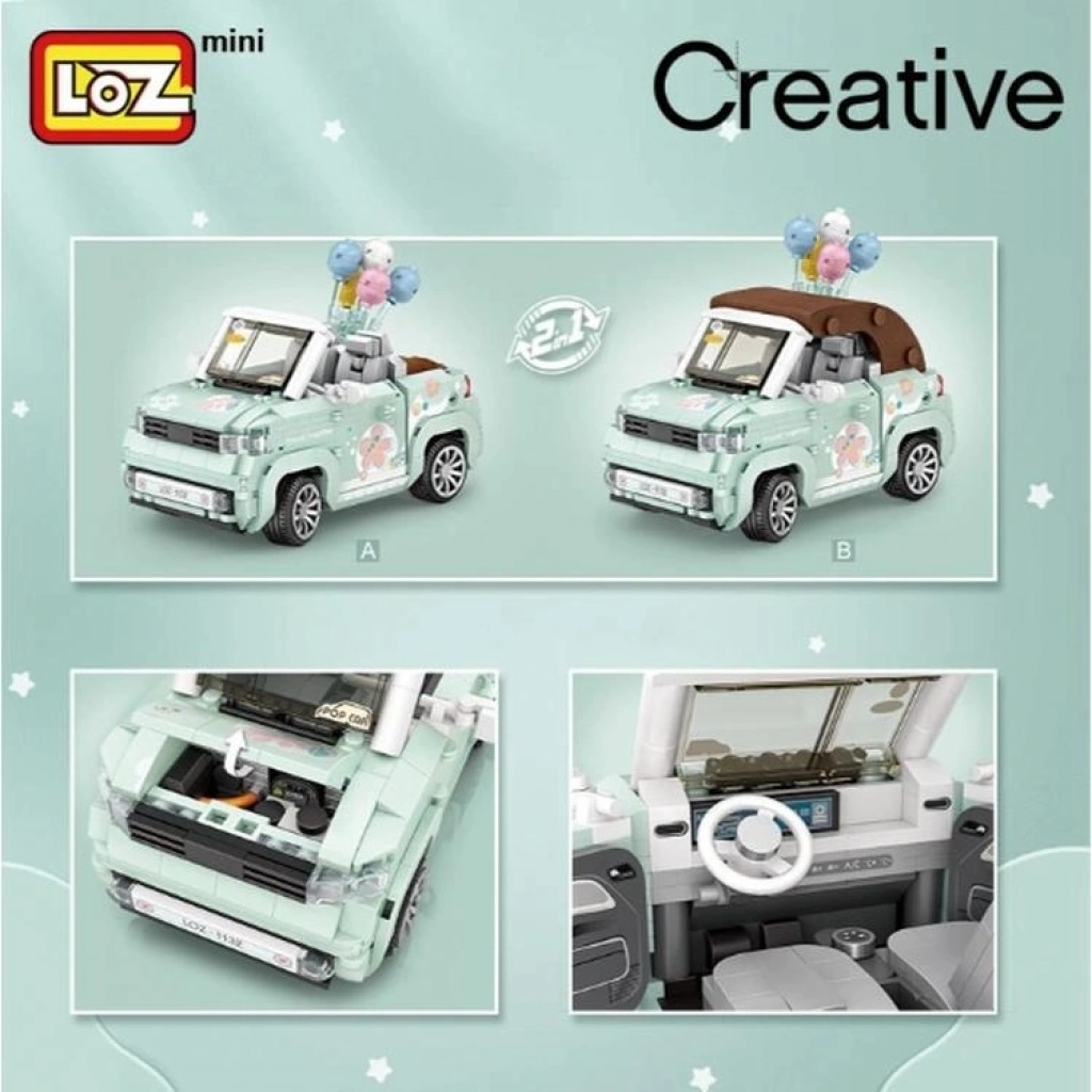LOZ Balon Arabası Yeşil 779 Parça Block Oyuncak, renkli balon detayları ve araç formu ile dikkat çeken eğlenceli ve dekoratif bir mini block modelidir.