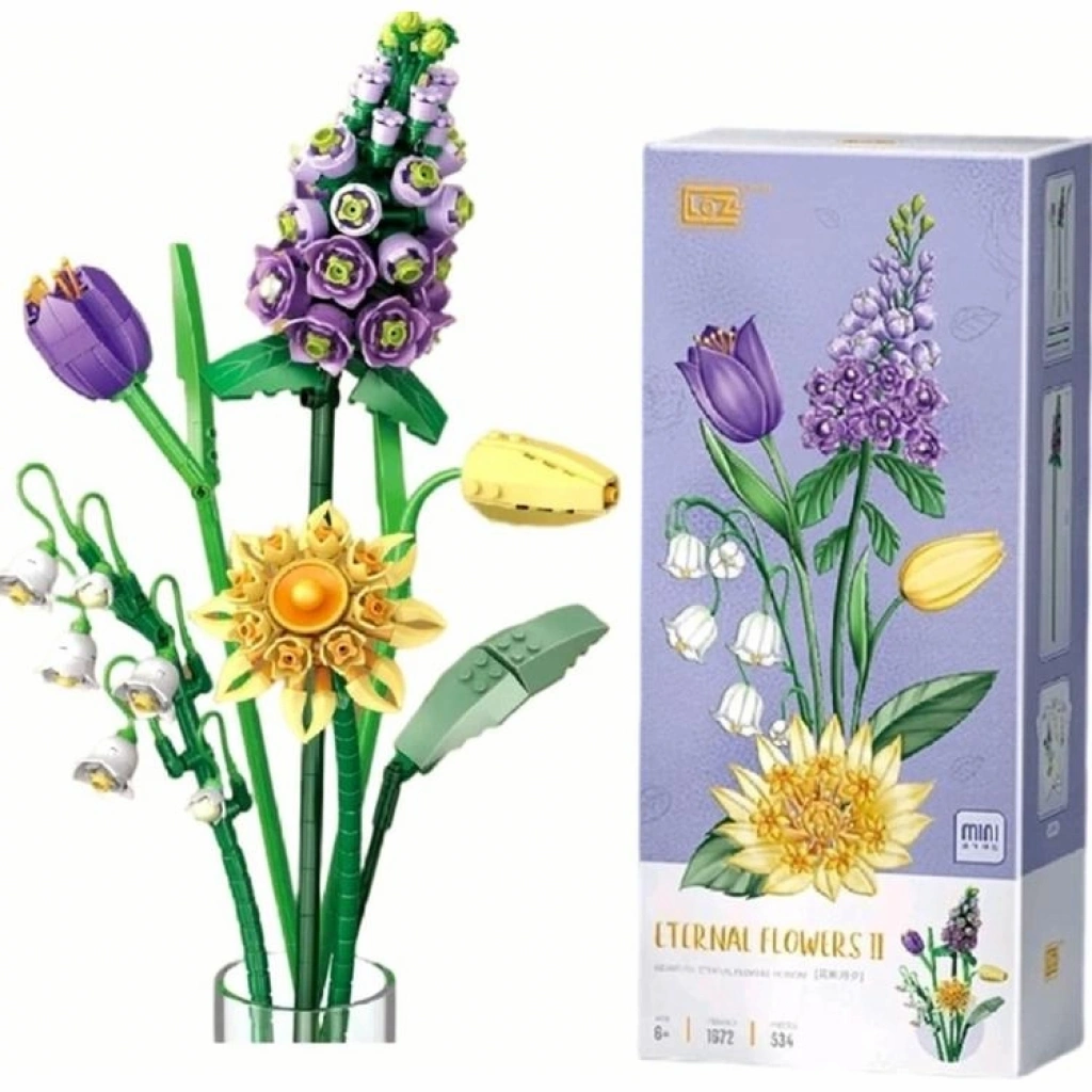 VAGONLIFE LOZ 1672 EBEDİ ÇİÇEKLER SERİSİ - LALE ZAMBAK YAPRAKLAR 534 PARÇA BLOCK OYUNCAK 3+