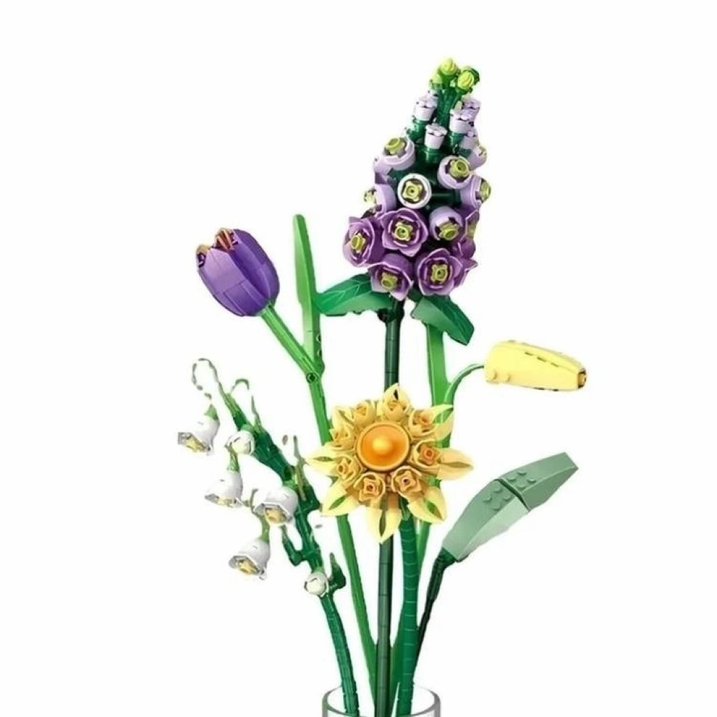 Gerçeğe yakın çiçek formları, uyumlu renk geçişleri ve yaprak detaylarıyla tamamlandığında ev ve ofis ortamlarına zarafet katan dekoratif bir obje haline gelir. Mini blok yapısı sayesinde sağlam, dengeli ve uzun ömürlü bir yapı elde edilir.
