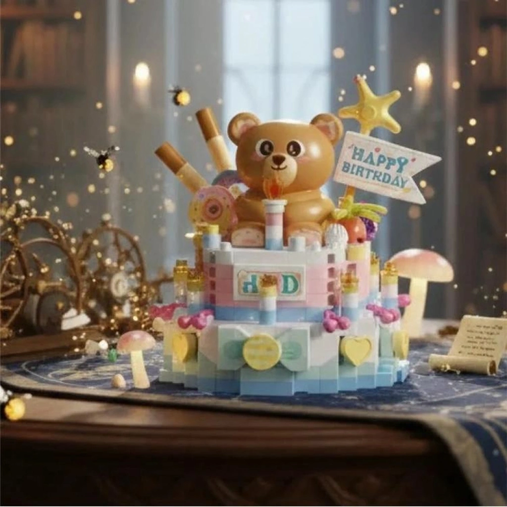 LOZ Ayılı Kek 370 Parça Block Oyuncak, sevimli ayıcık figürlü kek tasarımıyla hem eğlenceli bir oyun hem de dekoratif koleksiyon ürünü olarak kullanılabilir.