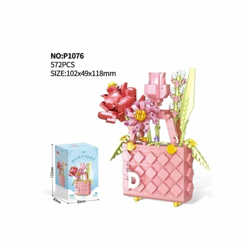 VAGONLIFE PANLOS YKO P1076 ÇANTA ÇİÇEK BUKETİ 572 PARÇA BLOCK OYUNCAK 6+